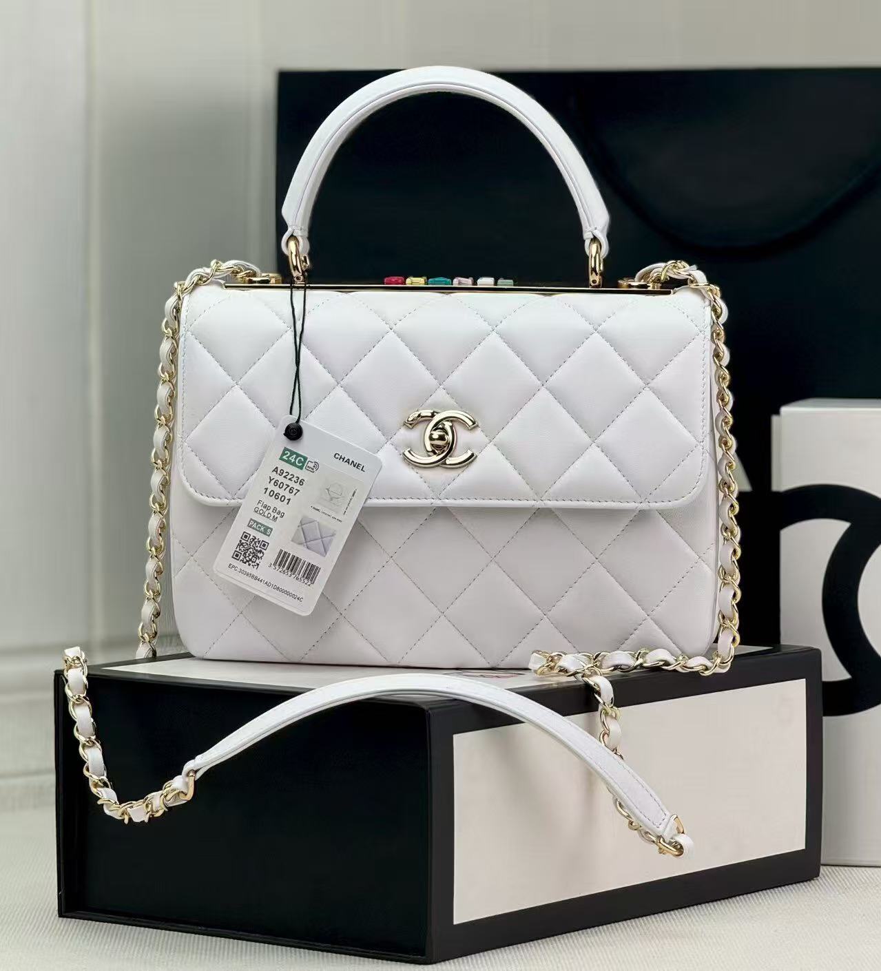 This Chanel Trendy Multi-Color Bag is crafted from original single-source imported lambskin leather and finished with authentic hardware components. The interior is lined with Chanel’s signature fabric, offering both style and durability. A timeless piece, it can be carried as a top-handle or shoulder bag, making it versatile for different occasions.