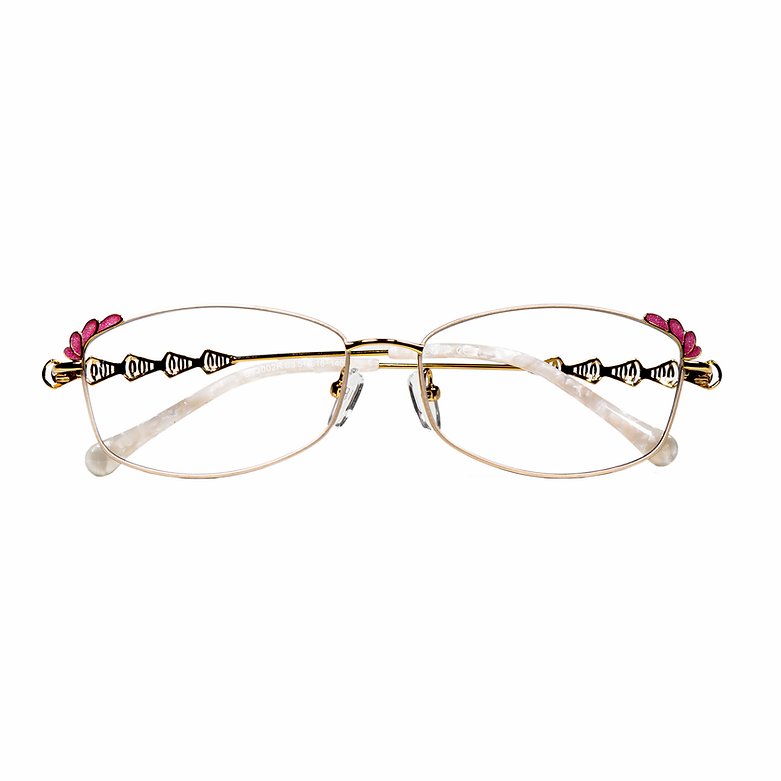 Lightweight Armor Plated Stainless Steel with 14 Karat Yellow Gold Plate with Pink Accent. Prescription Lenses or Blue Light Blockers available.