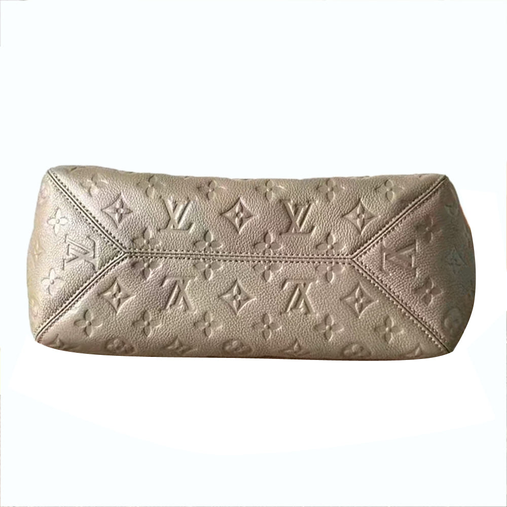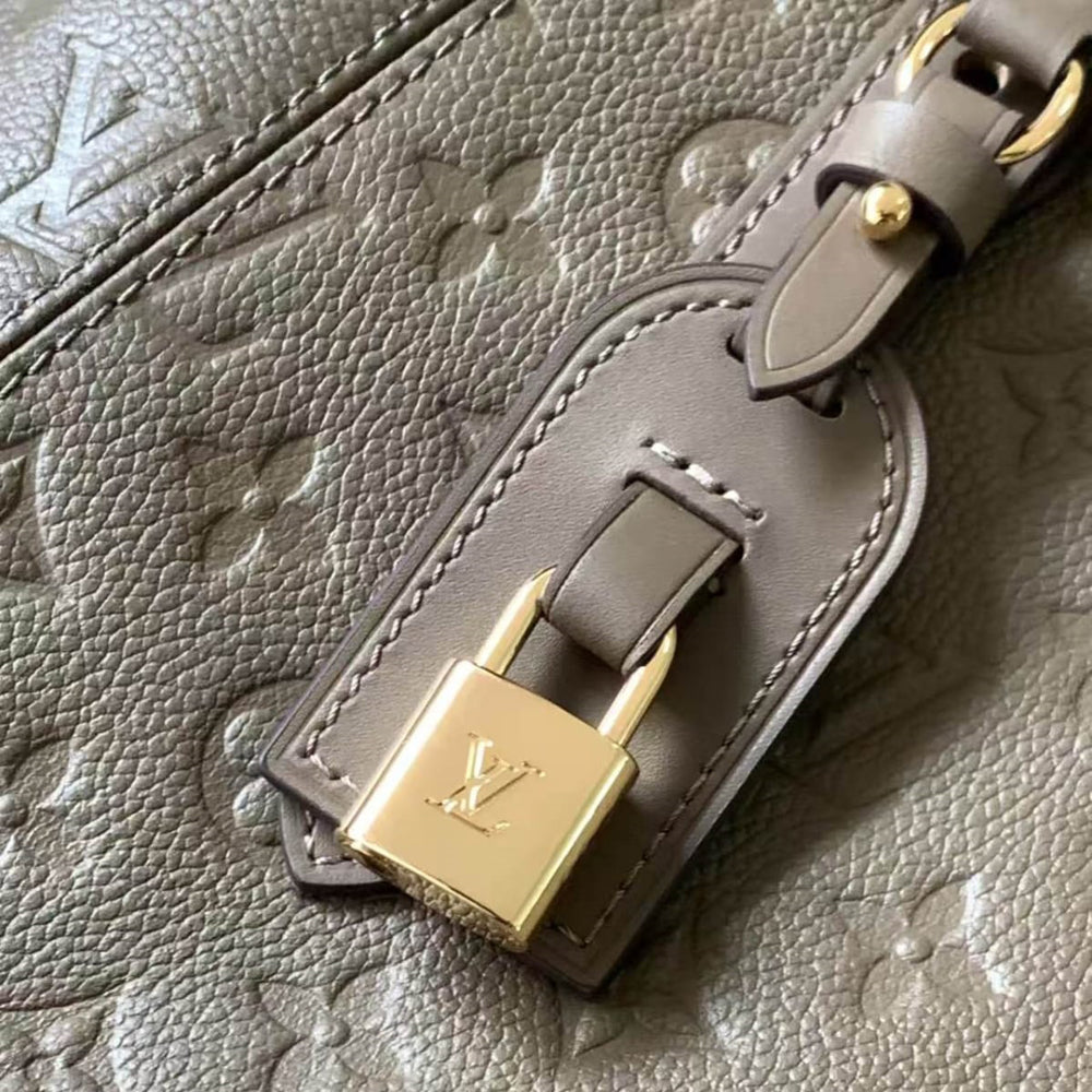 Crafted from supple Monogram Empreinte leather, this luxury handbag features cowhide leather trim, a soft fabric-lined interior, and gold-tone metal accents. Signature details like the LV padlock and branded nameplate showcase Louis Vuitton’s impeccable craftsmanship.
