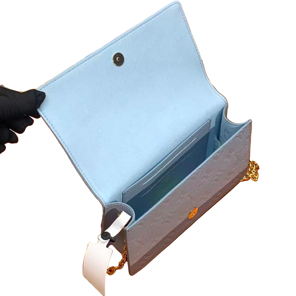 Made from top-grain cowhide! Wallet On Chain Metis features grain-finished Monogram Empreinte leather, with a branded Monogram pattern embossed onto it. Its unique trapezoidal design stands out. The front flap is secured by an S-lock buckle. The entire bag is covered with a leather-embossed chain strap. This design is reminiscent of the classic Louis Vuitton travel cases. The detachable chain allows for cross-body carrying.