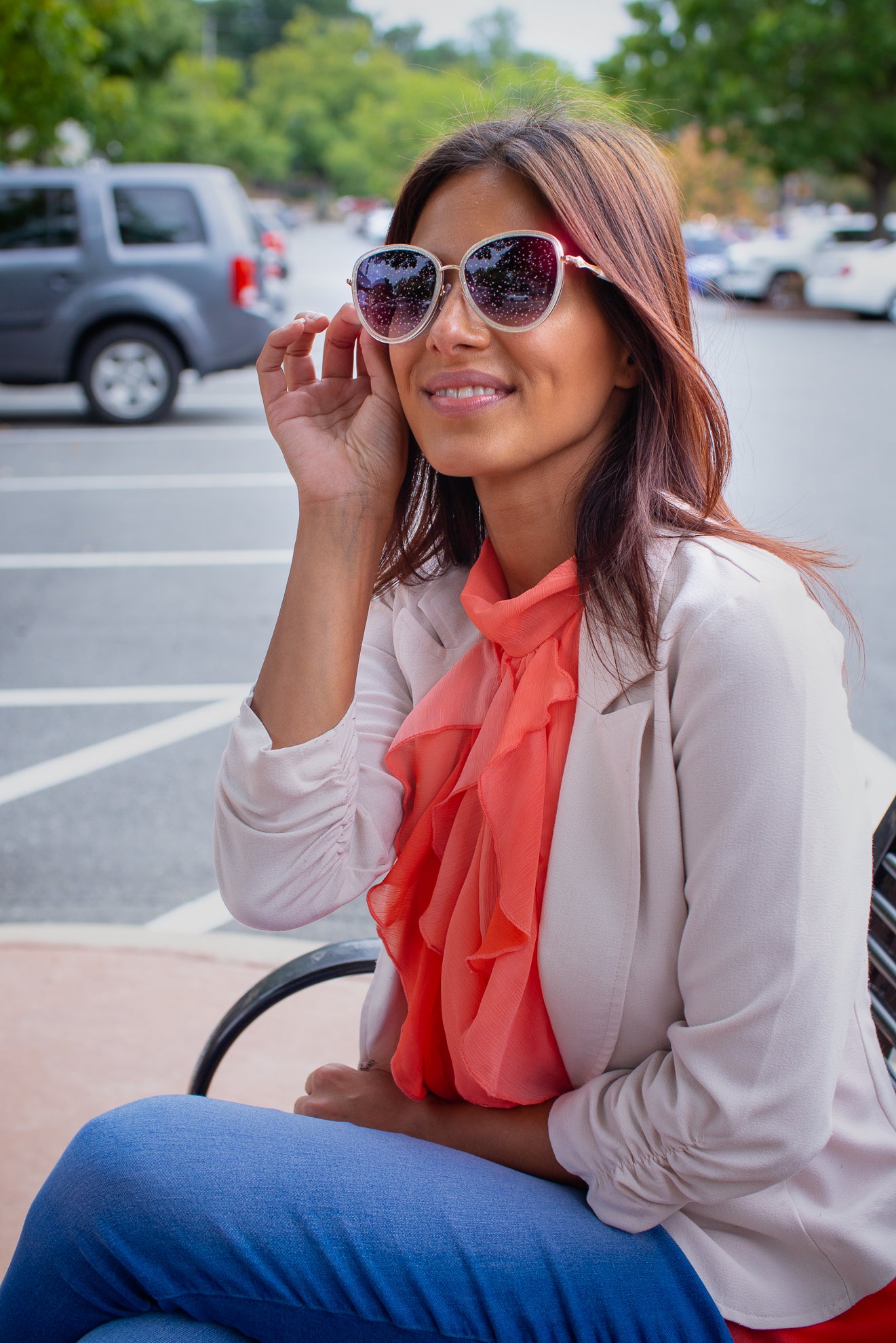 Anti Scratch Composite Lenses Silver Glitter Gradient Grey Lenses./ With Striking Silver Glitter Grey Rim.