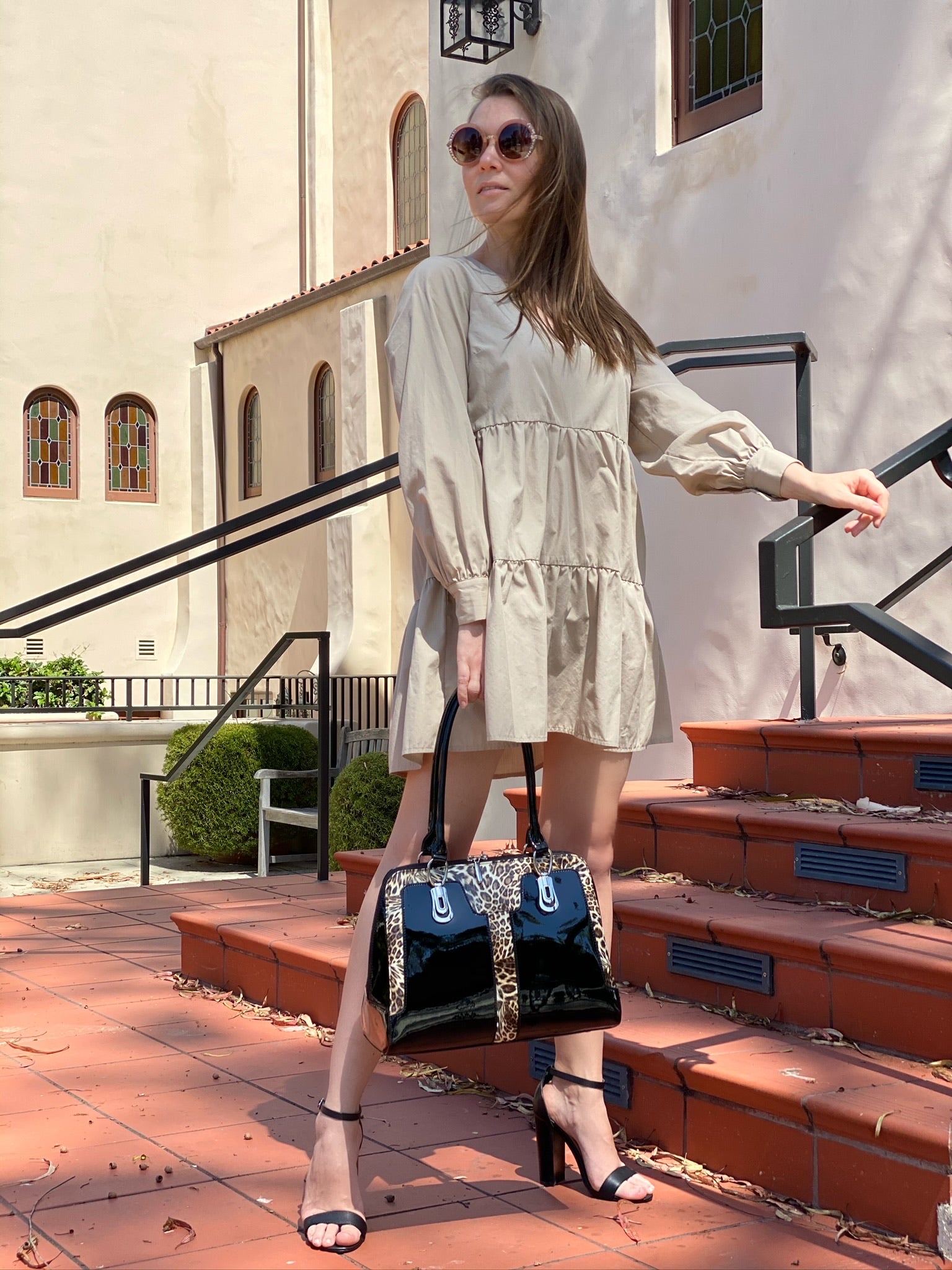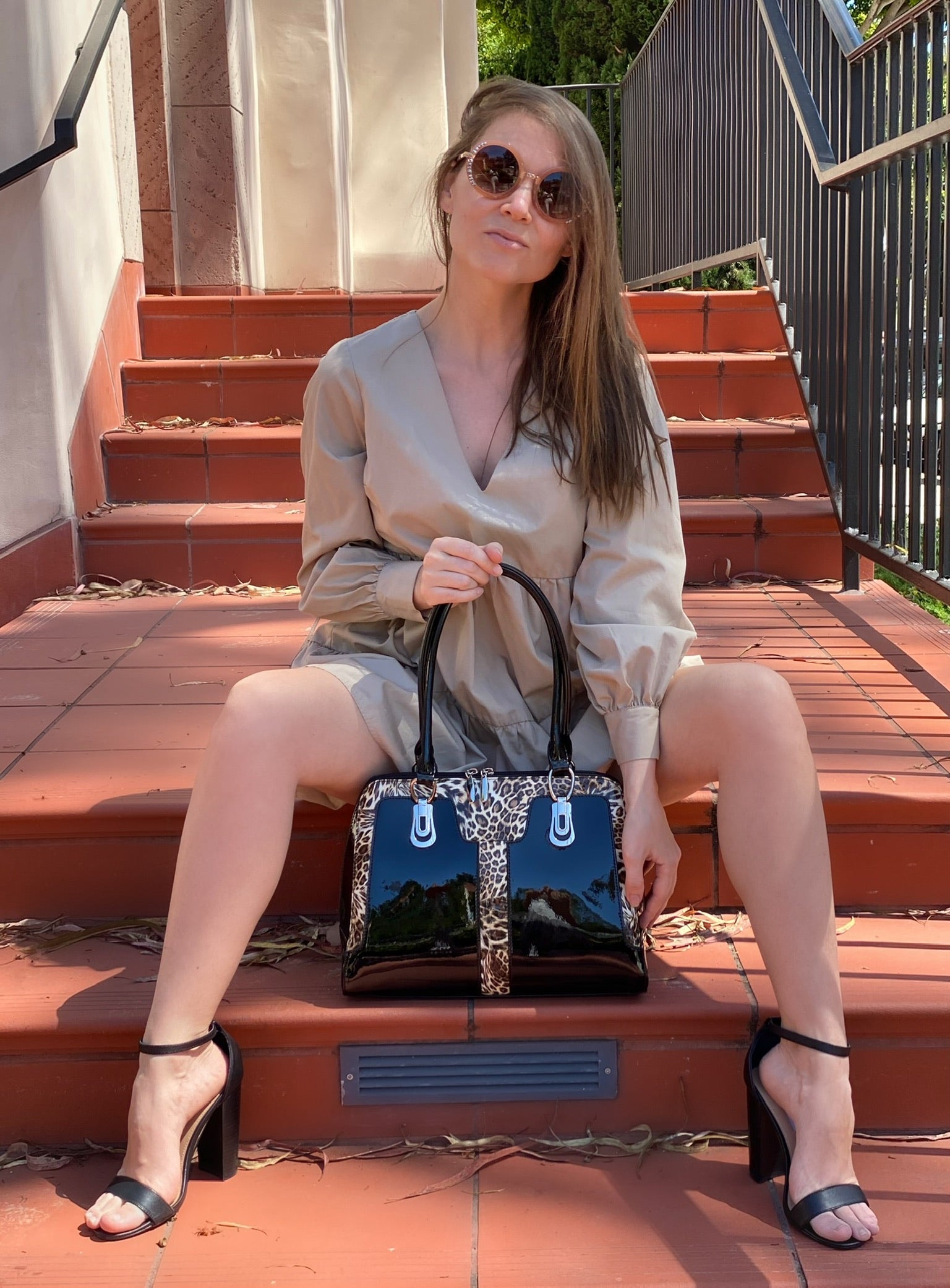 Diana Black Leopard Print Leather Handbag BH52-7573B