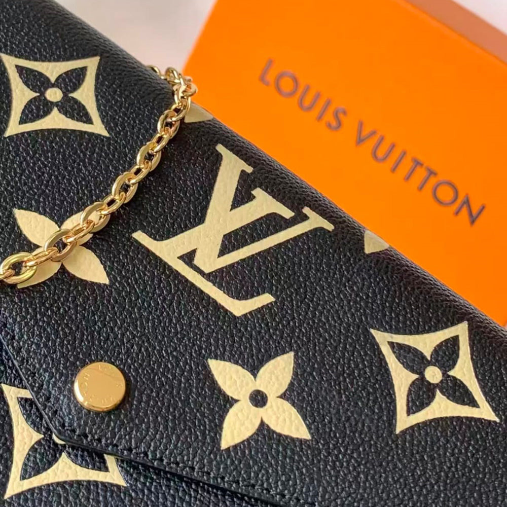 Elevate your everyday look with the Louis Vuitton Pochette Félicie, a versatile chain bag crafted from luxurious Monogram Empreinte leather. This sleek envelope-style design showcases the iconic LV Monogram pattern embossed on soft grain calf leather, blending timeless elegance with modern functionality.