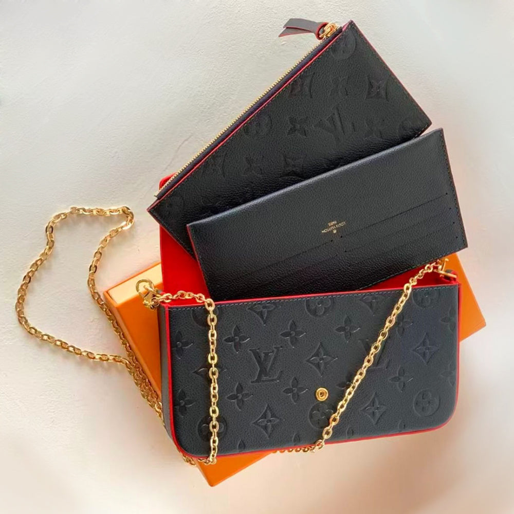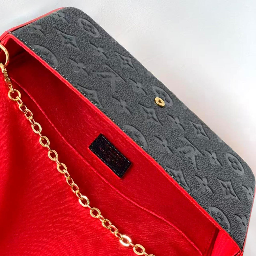 Elevate your everyday look with the Louis Vuitton Pochette Félicie, a versatile chain bag crafted from luxurious Monogram Empreinte leather. This sleek envelope-style design showcases the iconic LV Monogram pattern embossed on soft grain calf leather, blending timeless elegance with modern functionality.