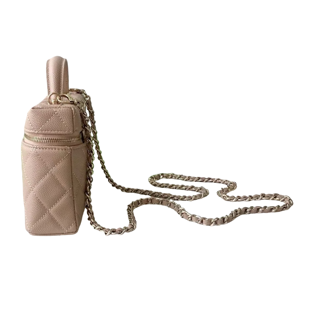 - Style: Vanity Case with Chain (often referred to simply as the Chanel Vanity Case or Top Handle Vanity Case).