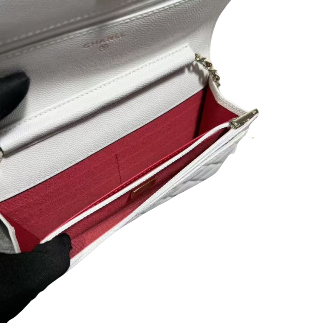Pre-Owned Authentic Lambskin Quilted CC Pearl Crush Wallet on Chain WOC White